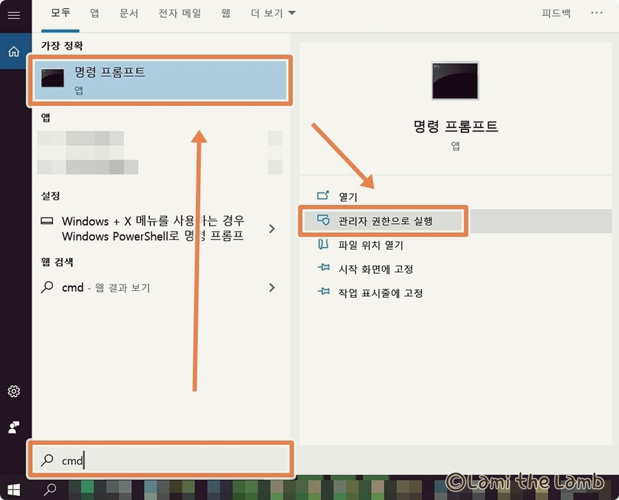 windows 7/8/10은 더욱 간단히 명령어만 입력하면 끝납니다.