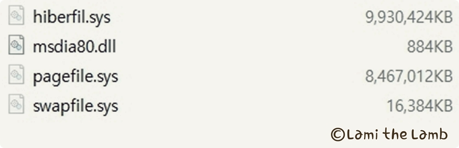 RAM의 손실을 방지하는 역할도 하다보니 컴퓨터에 설치한 RAM과 거의 비슷한 크기로 만들어진다고 보시면 됩니다. 그런 역할을 하다보니 이 파일을 제거하면 최대절전모드도 사용하지 못하게 된다는 단저미 있긴 해요.